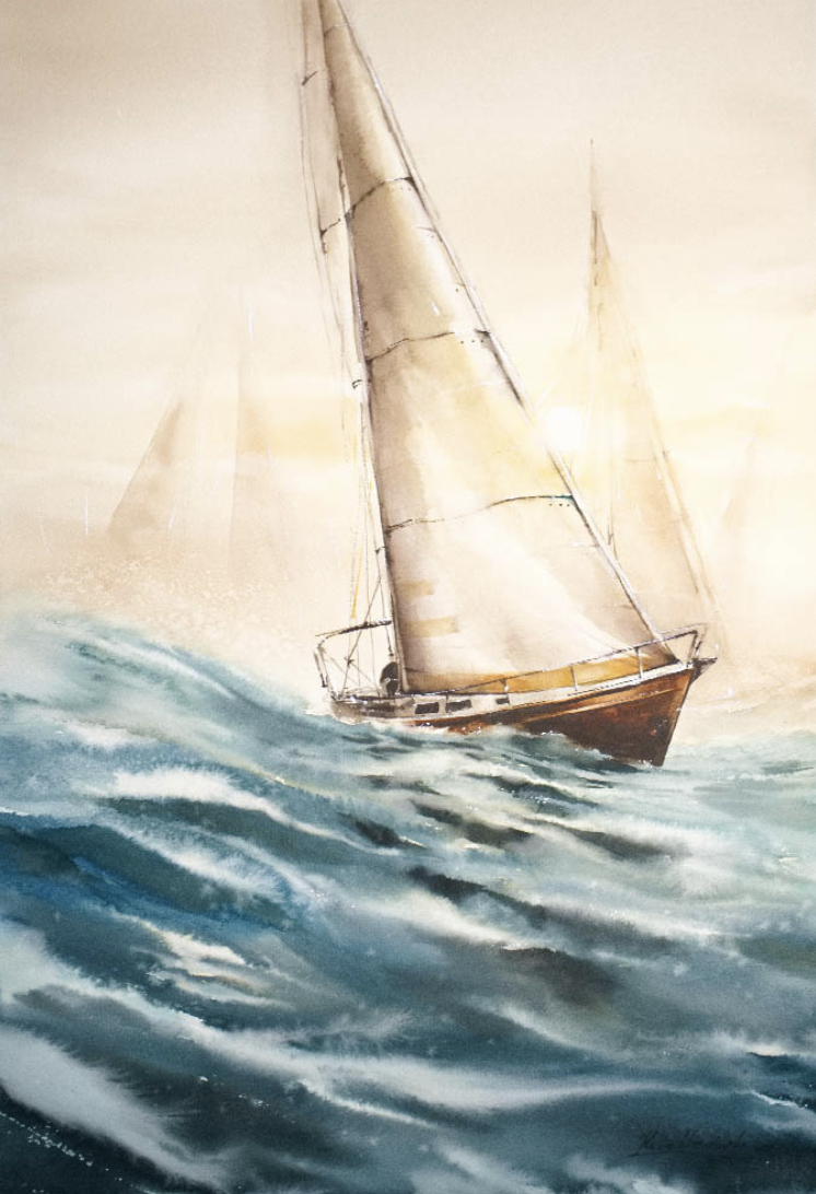 DESCRIPTION: A perfect combination of a loose style that highlights unique watercolour effects, and precision with a decent dose of realism. We'll first focus on painting waves on super-wet paper (get ready to let it go - water will be dropping on the floor and will give you many unexpected effects - we will grasp all the randomness and practice being okay with all 'accidents' :)). After the loose beginning, we will focus on painting a boat. Now, in a more realistic way - with shadows, the colour of wood, and the shininess of metal elements. Sounds intimidating? Don't worry, I will break it down into a few easy-to-follow steps and provide help at every stage :)