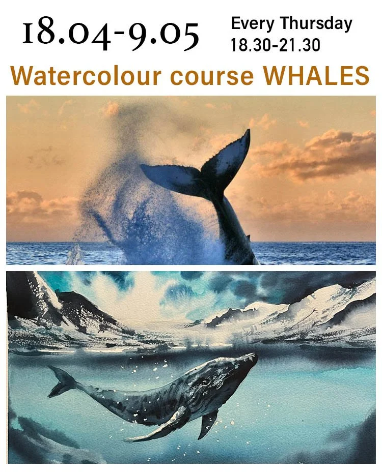 We will learn all about the materials (watercolour paint, brushes, and paper), where to start with and how to prepare, mix and combine colours, and apply different brush techniques (wet-on-wet, wet-on-dry, and various dry brush techniques), paint watercolour tones and show different textures.