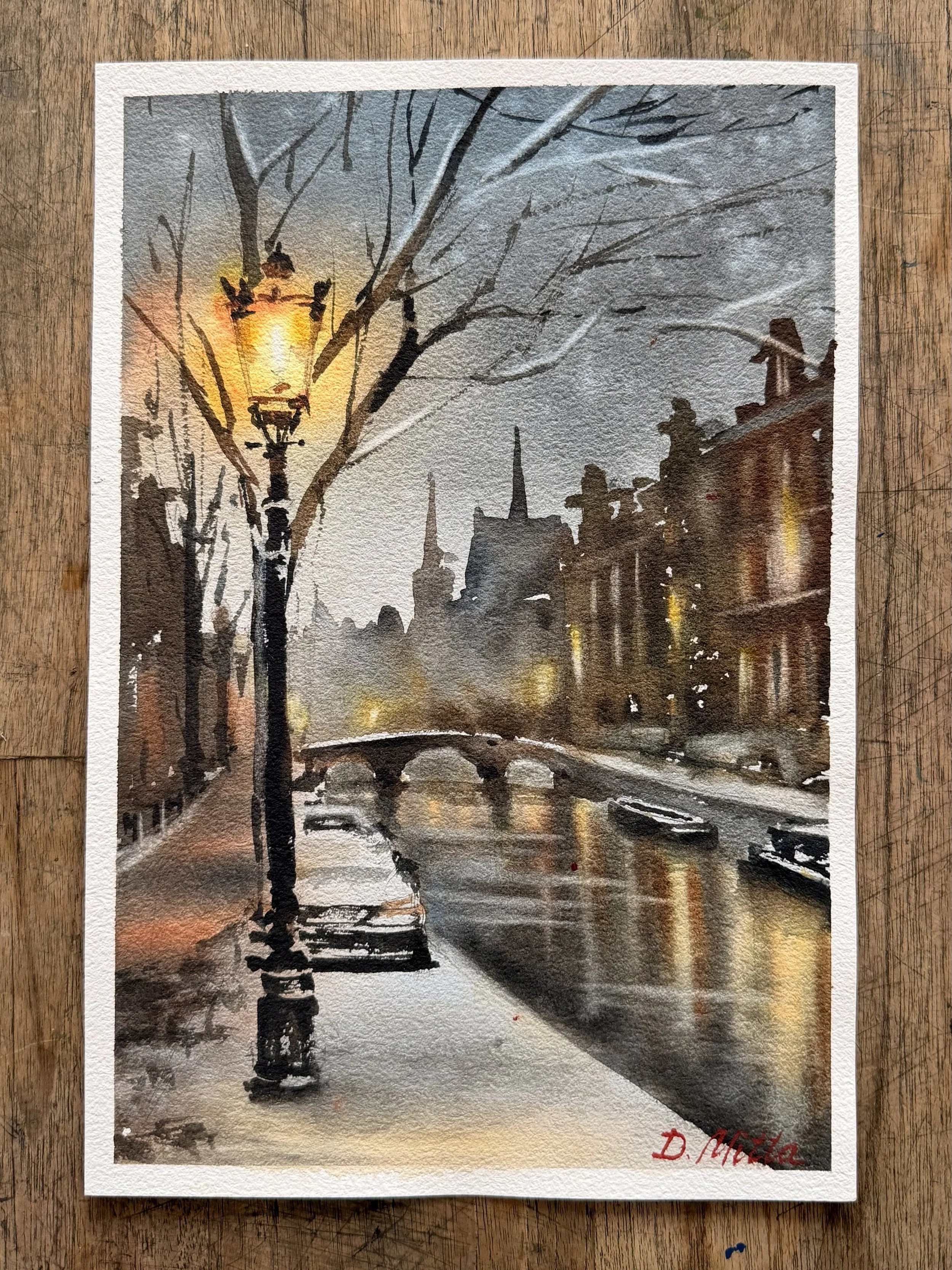 "Winter cityscape in watercolor"